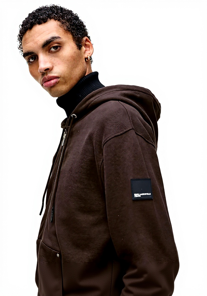 Dieser Kapuzenpullover von Karl Lagerfeld Jeans überzeugt mit einem klassischen Regular Fit und einem frontseitigen Reißverschluss. Hergestellt aus 350 GSM halbgebürsteter Bio-Baumwolle, bietet er maximalen Komfort und Langlebigkeit. Ein markentypisches Silikon-Patch am Ärmel und metallische Akzente unterstreichen das elegante Design.
