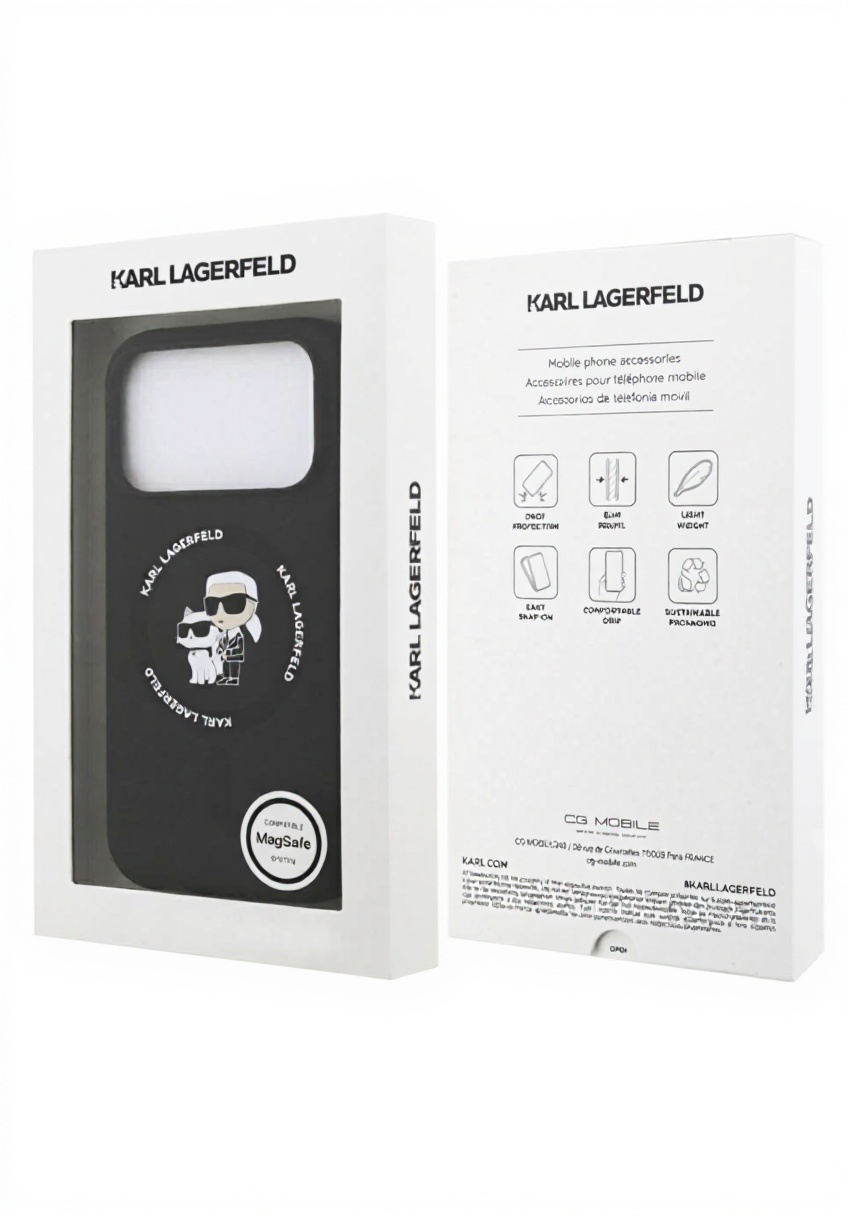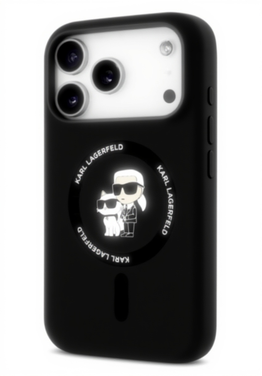 CG MOBILE Karl Lagerfeld Silikon-Ring „Karl & Choupette“ kompatibel mit MagSafe Hülle für iPhone 17 Pro Max (Schwarz)